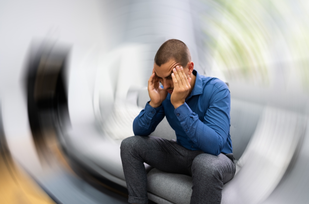 A person with vertigo will have a sense that their head or their environment is moving/spinning.